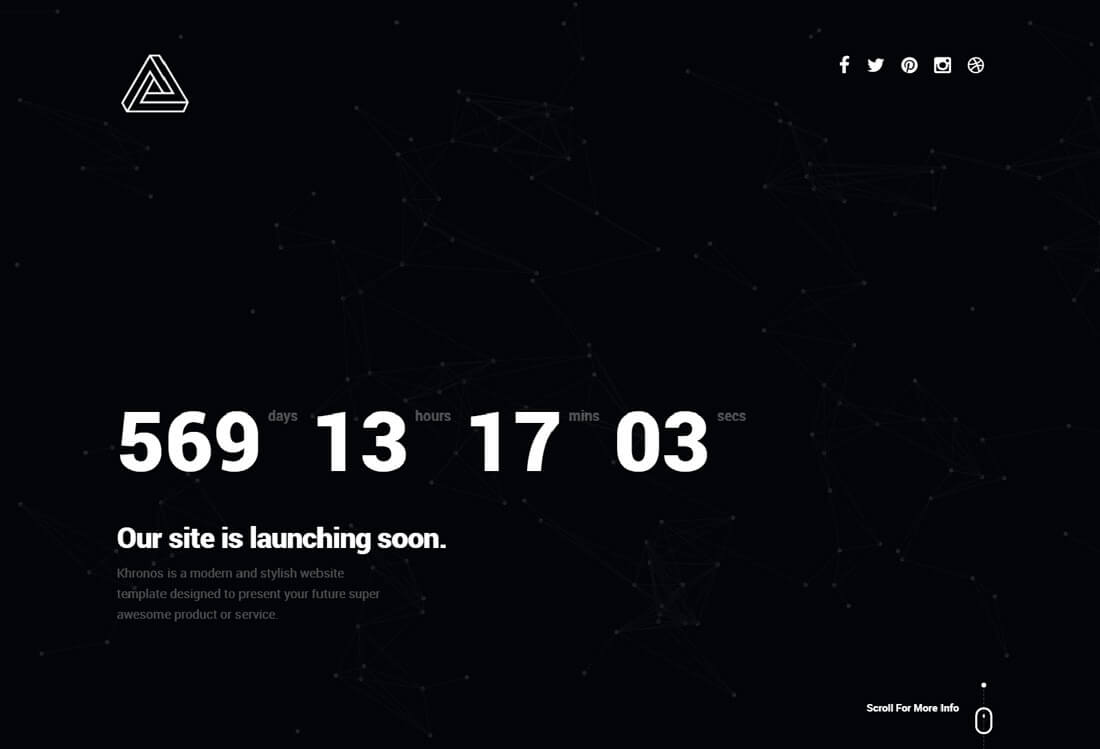 Khronos is a creative pack of coming soon template pages. It's elegant and clean design makes it perfect for every creative people, corporate, agency or anyone who is currently building their site and want to show a coming soon page in a creative way. Khronos is available in three style variations: static, slideshow, and particle background. It is fully responsive and retina ready, looks great on any screen and devices. It is also mailchimp ready and has a working ajax contact form.